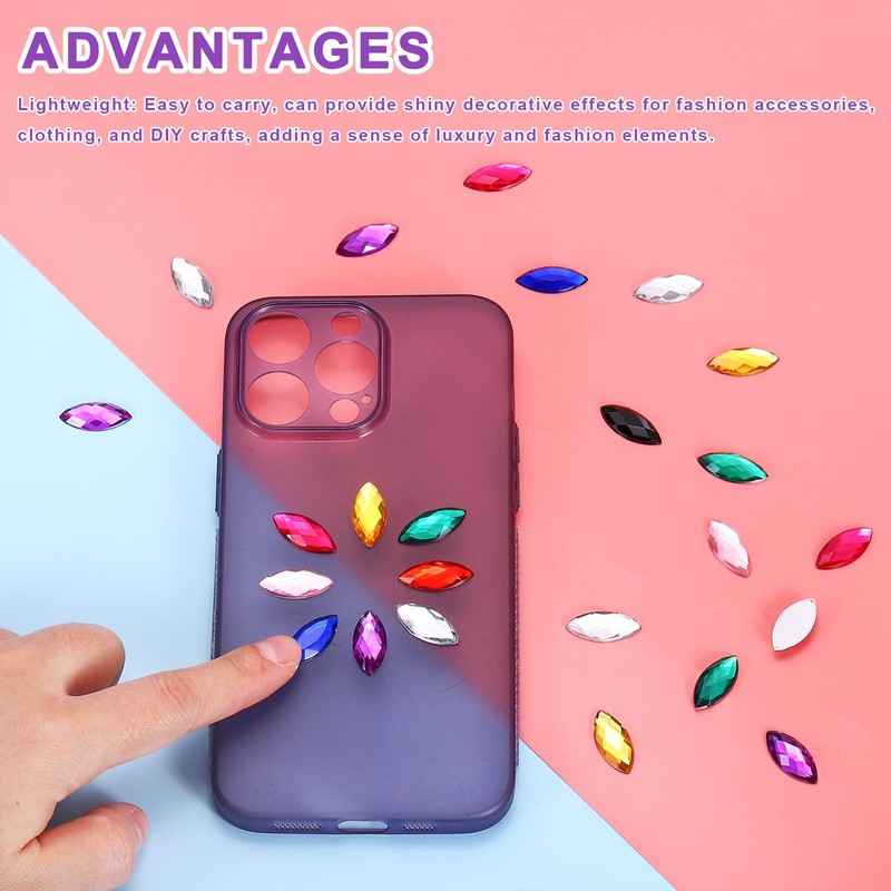 - 1.Shining appearance: Shining and beautiful, with a luxurious visual effect. 2.Flat back: Easy to stick and fix on the surface of various objects, convenient for making decorations and handicrafts. 3.Strong durability: Acrylic material is strong and durable, not easy to wear or discolor, and maintains gloss and beauty. 4.Lightweight: Easy to carry, can provide shiny decorative effects for fashion accessories, clothing, and DIY crafts, adding a sense of luxury and fashion elements