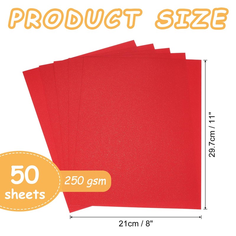 - Shimmer Paper Sheets: Size: 29.7 x 21 cm / 8 x 11 Inch (L x W); Color: Bright Red