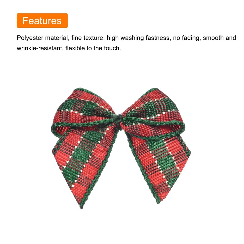 - Material: Polyester; Color: Deep Red Green; Dimension: 1 x 1 inch (W*H); In the package of: 50 x Mini Ribbon Bows