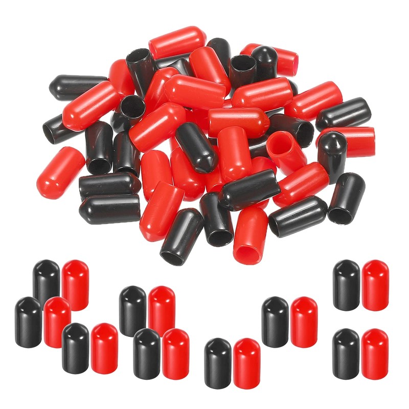 MECCANIXITY 50pcs Rubber End Caps Cover Assortment 1/4 inch(6.5mm) PVC Vinyl Screw Thread Protector for Screw Bolt Black Red