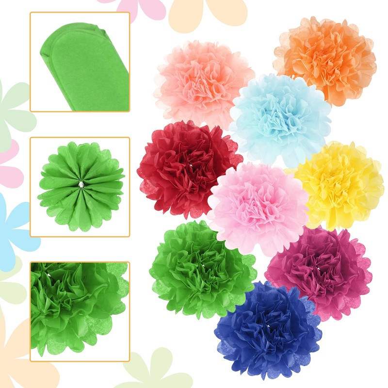 - These tissue paper pom poms can be used for your DIY projects,enrich your spare time and make your home more beautiful,their delicate shape will also make your crafts more special,the decorative paper flowers look lovely and delicate, wonderful decorations for festival and party.