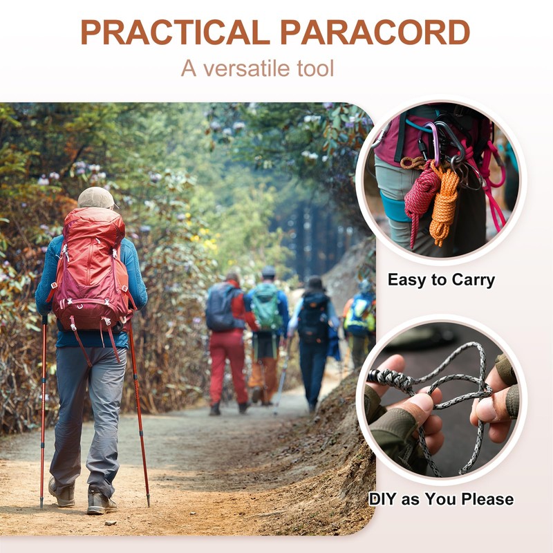 Reliable Paracord: The utility survival 650 paracord rope is made of 9 high-strength strands of core weave, durable and wear-resistant. Resistant to Environmental Factors and Harsh Conditions.