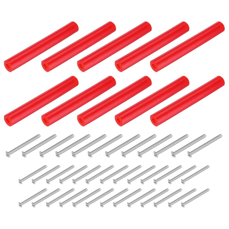 - Switch receptacle screw spacer tube inner diameter: 4mm/0.16 inch ; Switch receptacle screw spacer tube outer diameter: 10mm/0.39 inch ; Switch receptacle screw spacer tube length: 76mm/2.99inch ; Long socket screw length: 1-1/2 inch(approx. 38mm,36pcs)+ 1-3/4 inch(approx. 45mm,12pcs) ; Long socket screw specifications: 6-32*1-1/2 inch(36pcs)+ 6-32*1-3/4 inch(12pcs) ; Package contains: 24pcs switch receptacle screw spacer tube + 48pcs long flat head socket screw.