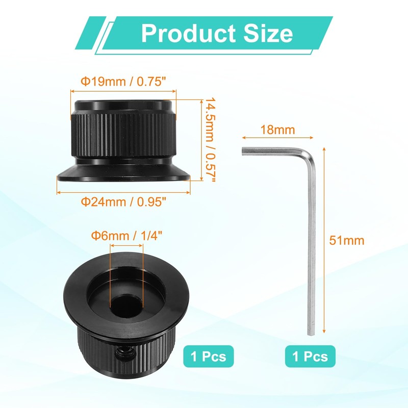 In the package of: 1 x Aluminium Potentiometer Knobs(Each package contains 1 x L-type hexagonal wrench: 1.5x18x51mm, Silver)