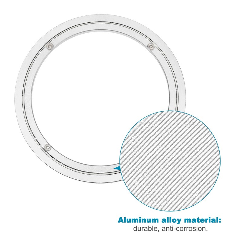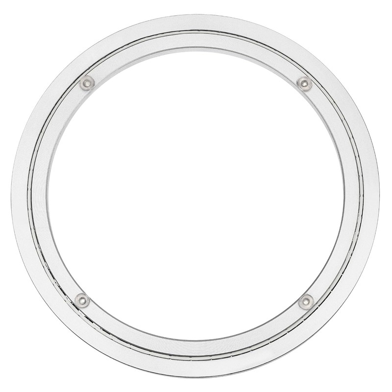 - Aluminum lazy susan ring,Size:Outer Diameter:11.8";Inner Diameter:9.5";Thickness:14mm;Aperture:4.5mm;Distance between adjacent holes:180mm;Load Bearing:180KG;Material:Aluminium Alloy;Color:Silver;Pack with 1pcs x Aluminum lazy susan(Malposition mute);