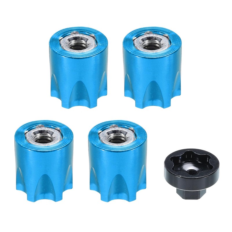 MECCANIXITY Aluminum RC Wheel Nut M4 Wheel Nut Center Cap Locking Hub Belt Tool Suitable for Model Car SCX10 Tire Fixing Nut,4 Pack (Blue)