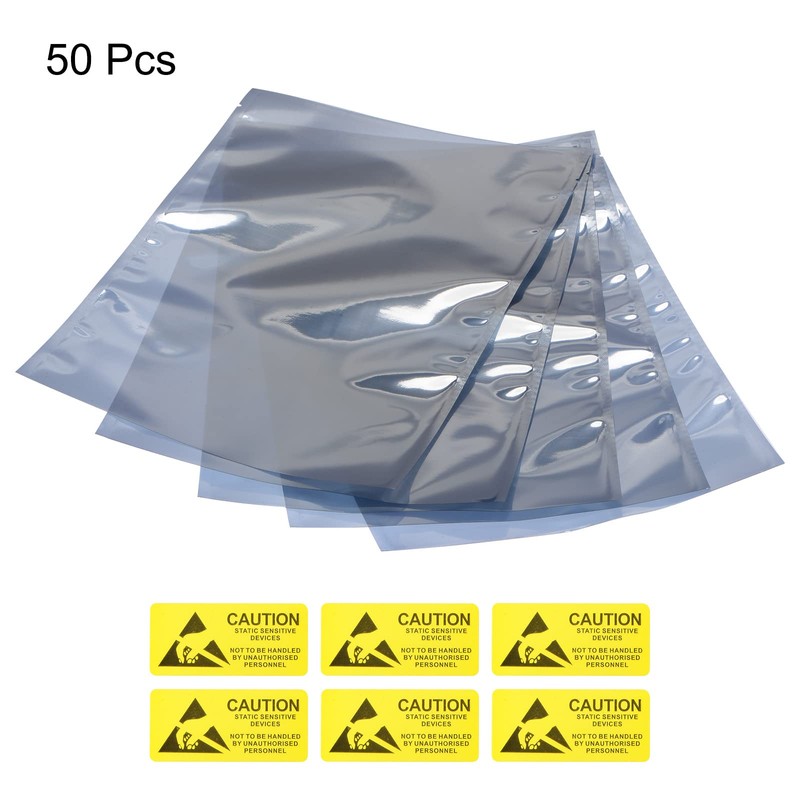 MECCANIXITY Anti Static Bags Shielding Bag 50pcs 8x12inch(20x30cm) Open Top with Labels for Hard Drive HDD SSD