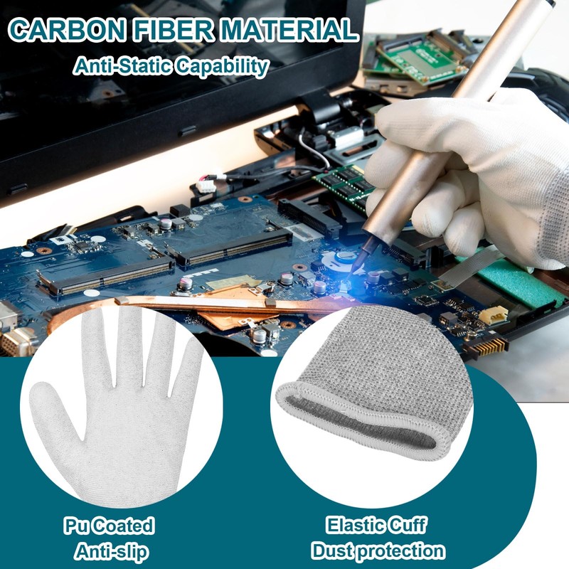 Anti-static gloves are suitable for installing and maintaining computers, mobile phones, electronic products, as well as for jewelry, laboratory, cleanroom use to prevent dust and debris entry.