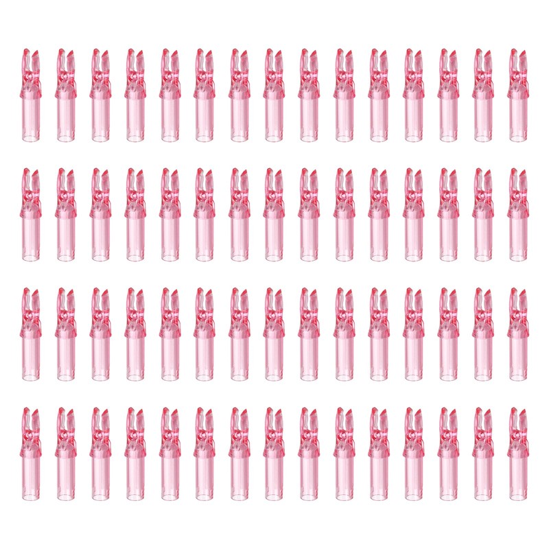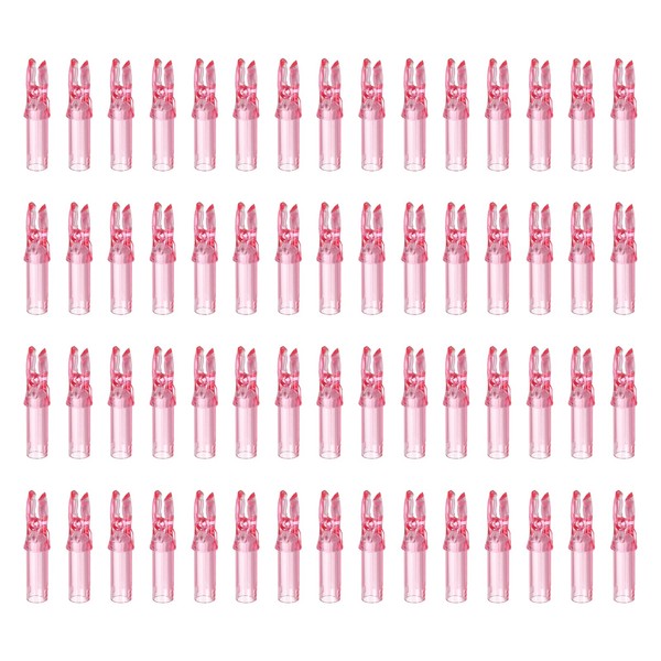 • The Archery Arrow Nocks, our provides here, are in size of 31x7 mm/1.2x0.244 Inch(LxD); Material: Plastic; Color: Transparent Pink; Packing List: 60 Pack x Archery Arrow Nocks