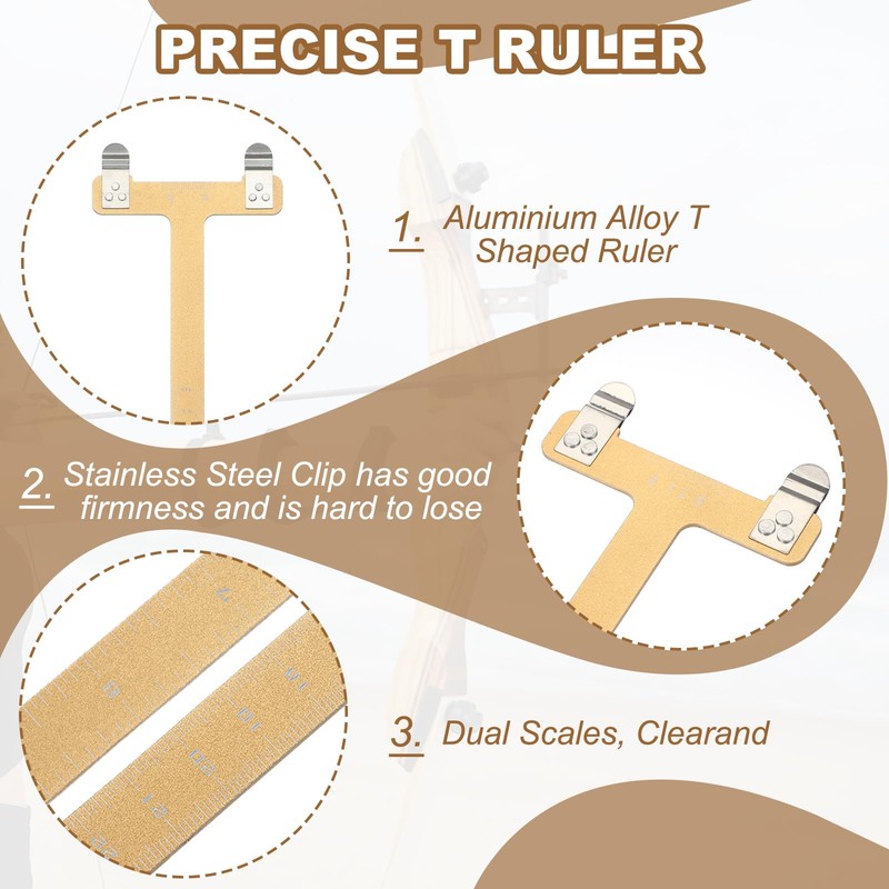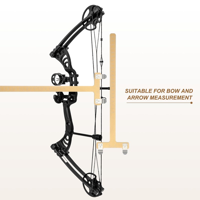 - The T-square can be fixed on the string above and below the nock point, with two measurement units, and the markings are clear and easy to read, which is convenient to use. The brass buckle and arrow nock pliers can help lock the position of the string nock point, and just a little adjustment can improve your archery accuracy.