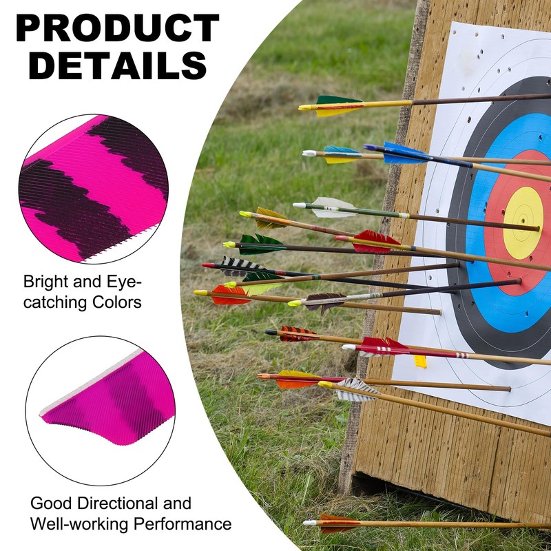 - Application: The arrow feathers suit DIY, target shooting, and outdoor hunting. They are an essential part of DIY arrow shooting, which can provide stability during flight and increase the arrow's accuracy.