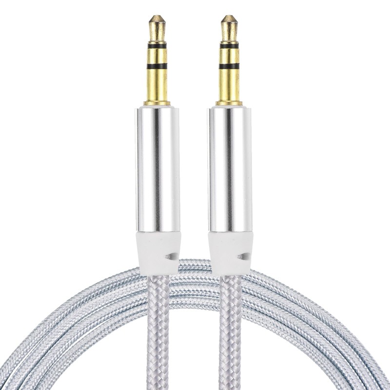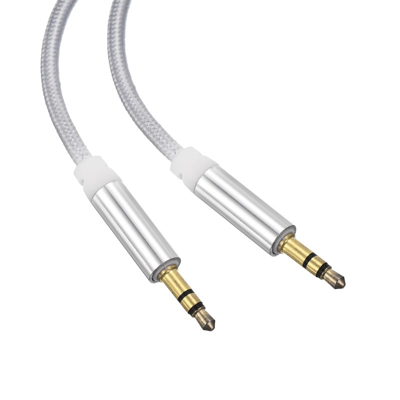 MECCANIXITY Aux Cable 3.5mm Male to Male Nylon Braided Cord 6.6Ft 3 Pole Stereo Sound Auxiliary Cable Silver for Earphones, Smart Phones, Home/Car Stereos, Speakers, Computers