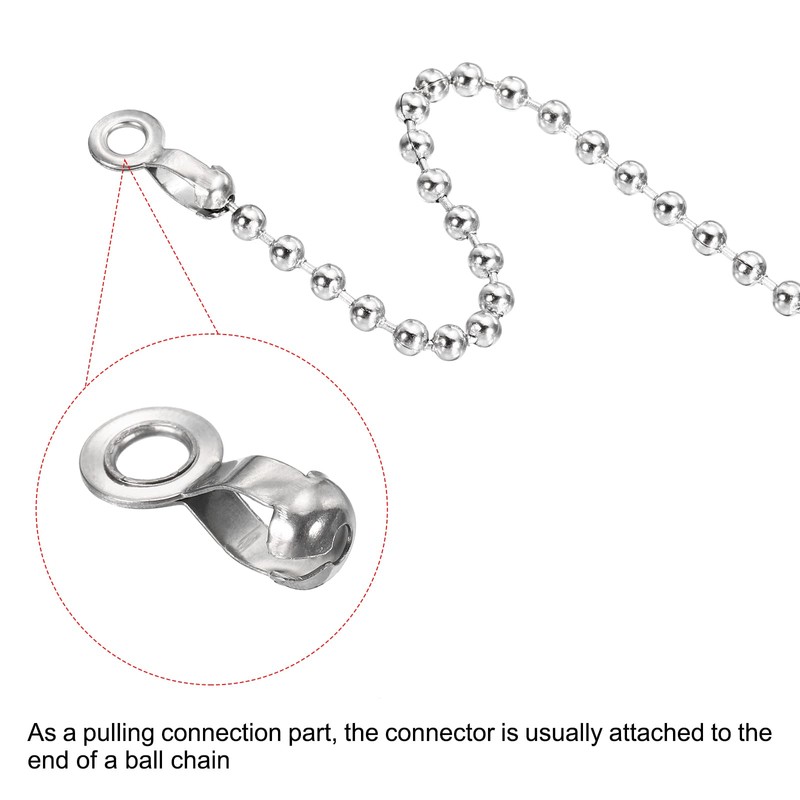 - Fit for Ball Chain Diameter: 2.4/3.2/4.5/6mm; Ball chain clasp length: 14,15,18,21.5mm / 0.55"0.59",0.7",0.85"; Material: Stainless Steel; Color: Silver; Packing List: 20 x 2.4mm Ball Chain Connector, 20 × 3.2mm Ball Chain Connector, 10 × 4.5mm Ball Chain Connector, 10 × 6mm Ball Chain Connector.