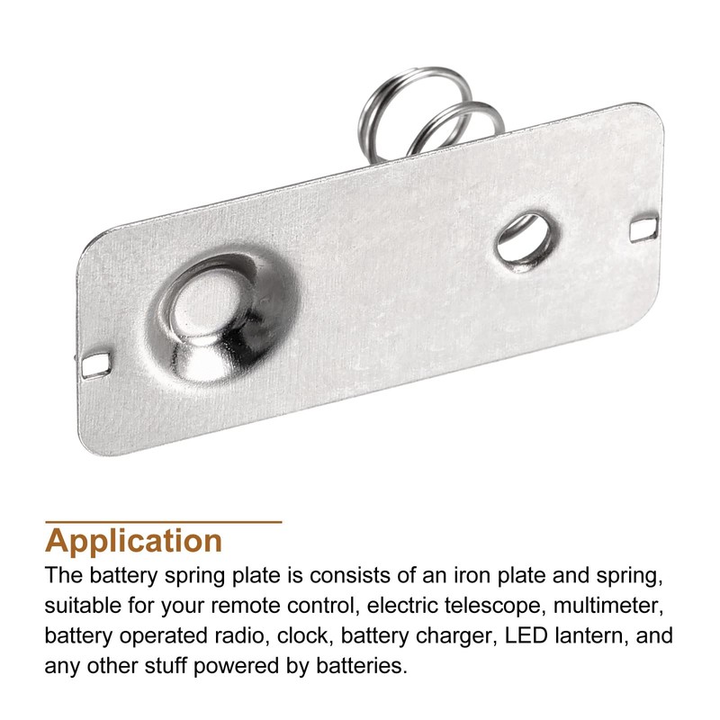 The battery spring plate is consists of an iron plate and spring, suitable for your remote control, electric telescope, multimeter, battery operated radio, clock, battery charger, LED lantern, and any other stuff powered by batteries.