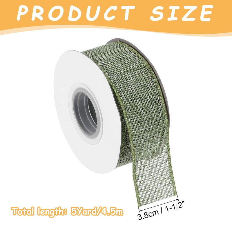 MECCANIXITY Burlap Ribbon Fabric Wired Edge Ribbons Light Green 1-1/2 Inch x 5 Yard Wired Ribbon for Gift Wrapping, Bow, Wreath, Christmas Tree, Flower Bouquet, with Roller
