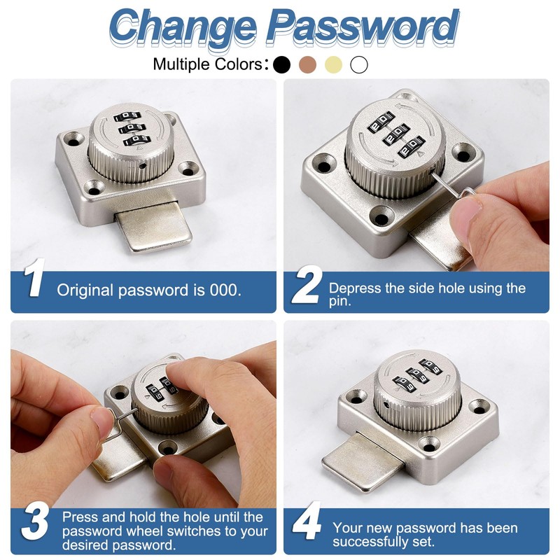 - The Combination Password Lock We Provide: Size of part 1: 52 x 42 x 29 mm/2.05 x 1.65 x 1.14 Inch; Size of part 2: 52 x 18 x 14 mm/2.05 x 0.71 x 0.55 Inch; Length of Screws: 25 mm/0.98 Inch; Color: Gold; Material: Zinc Alloy; Package: 2 Pcs x Lock + 12 Pcs x Screws + 2 Pcs x Password Pin