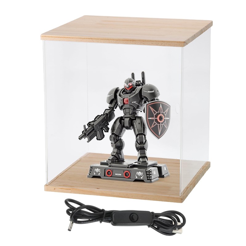 - The acrylic display case is in the size of Outer Size: 31.5 x 26.5 x 52.5cm/12 x 10 x 21(LxWxH); Inner Size: 30 x 25 x 50cm/12 x 10 x 20 Inch(LxWxH); Thickness Of Base: 1.2mm; Base Color: Wood; Light: Square; Material: Acrylic; Mode of Power: USB connector cable; Package included: 1Pcs x display case with lights.