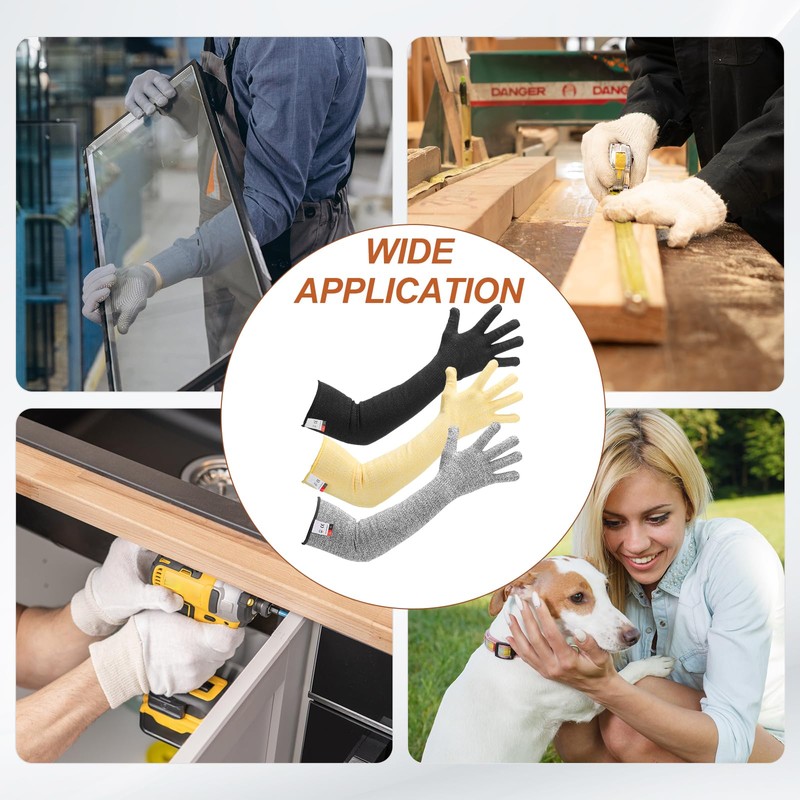 The A5 cut-resistant sleeves protect your arms from scratches and cuts during daily activities, suitable for safeguarding your arms when handling glass, metal sheets, machining, mining, welding, woodworking, food cutting, maintenance, assembly, and other tasks.
