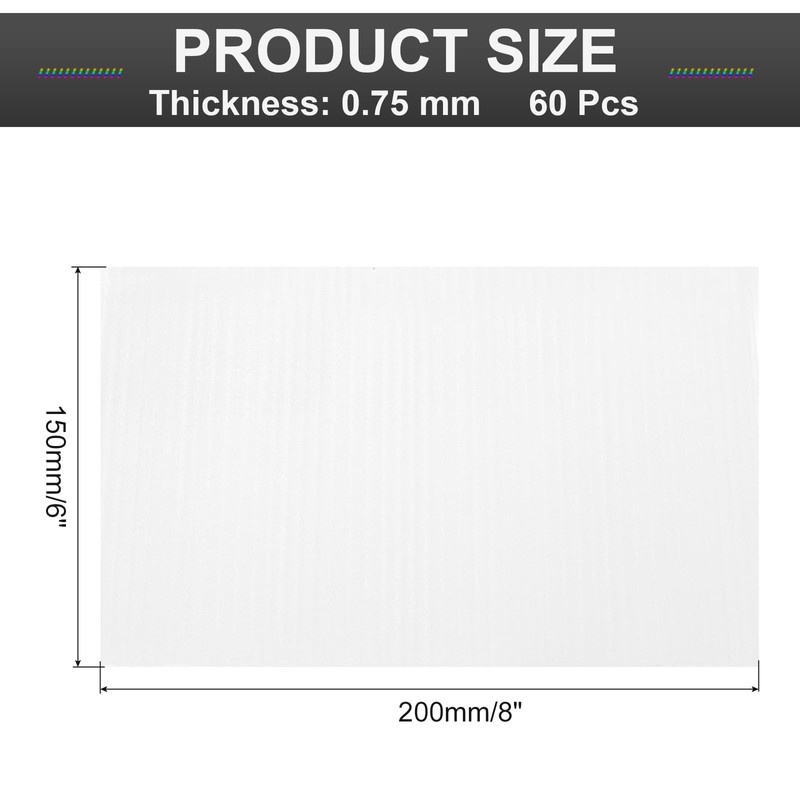- Material: Foam Paper;Product Size: 150 x 200mm / 6 x 8 Inch (W*L);Thickness: 0.75 mm / 0.03 Inch;Color: White;In the package of: 60 Pcs x Cushion Foam Pouches
