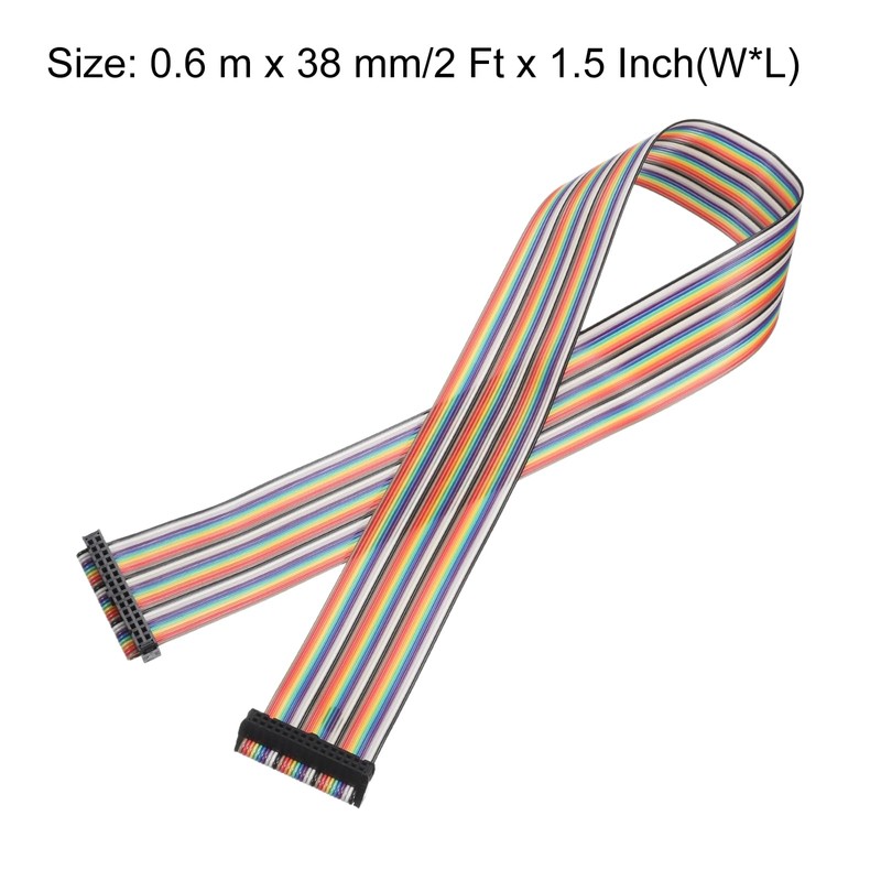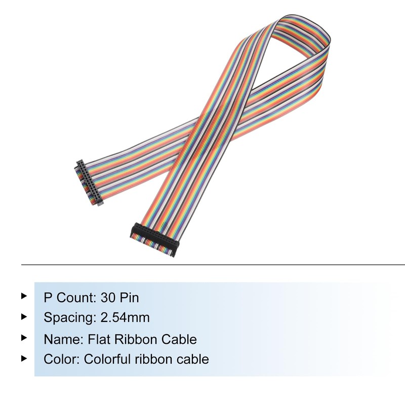 - Name: Flat Ribbon Cable,Color: Colorful ribbon cable,P count: 30 Pin,Spacing: 2.54mm,Size: 0.6 m x 38 mm/2 Ft x 1.5 Inch,Packaging Content:1 Pcs x flat ribbon cable