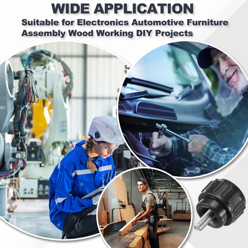 - Steps of installation: 1. Align the threaded insert or bolt of the knob with the component you want to secure. 2. Rotate the knurled knob clockwise by hand to tighten it onto the threaded component. 3. Apply sufficient force to securely clamp or fasten the parts together.