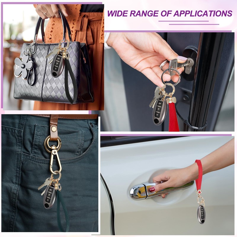 - The leather wristband keychain is a versatile accessory that allows you to easily access your keys and belongings while on the go. Suitable for hanging household keys, car keys, wallets, purses, cards, and small charm during travel, sports and outdoor activities, etc