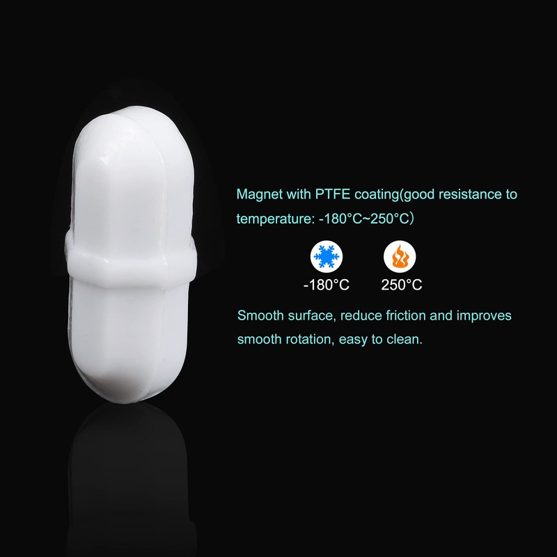 - The magnetic stir bar made from magnet with PTFE coating, the coating is corrosion resistant and has good resistance to high temperature(temperature tolerance range:-180 ℃~250 ℃)