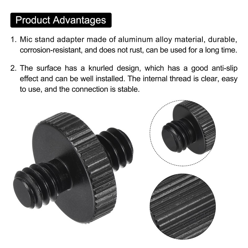 MECCANIXITY Mic Stand Adapter 1/4-20 Male to 1/4-20 Male Camera Screw Thread Adapter for Microphone Tripod Stand Black 2 Pcs