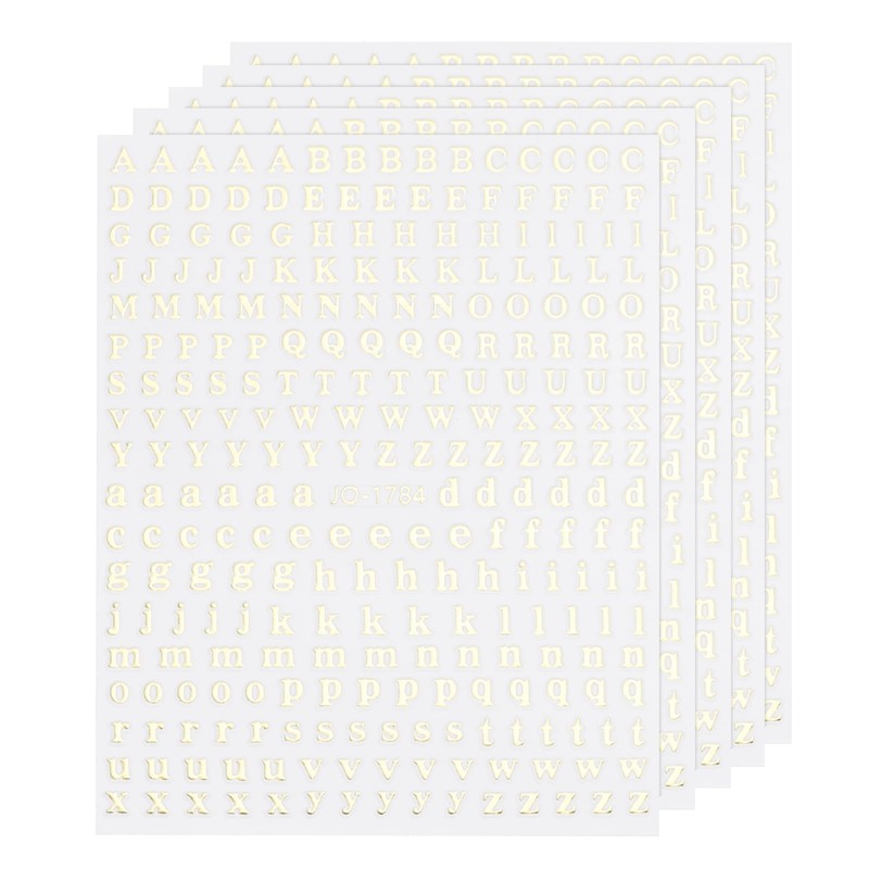 - Letter Nail Art Stickers, Size: 12.8x8 cm(L*W)/5x3.1 inch(L*W); Letter size: 3x3mm/0.12x0.12 inch ; Quantity: 5 Sheets; Color: Gold; In the Package: 5 Sheets Alphabet Nail Stickers