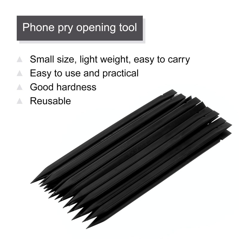 Plastic Stick Spudger, is in size of : 146mm x6.5mm x 4mm/5.74 inch x 0.25 inch x 0.15 inch(L*W*H);Color:Black;Material:plastic;In the package of: 50pcs x Phone pry opening tools