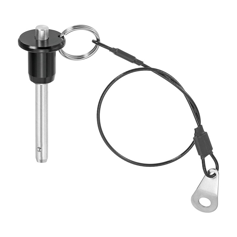 - Installation: Press the button on the handle to retract the steel ball on the head of the pin body, then pass the quick-release pin through the pinhole. When the button is released, the steel ball pops out, the quick-release pin cannot be pulled out from the pinhole. Equipped with lanyard cable to prevent the loss, and easy to carry.