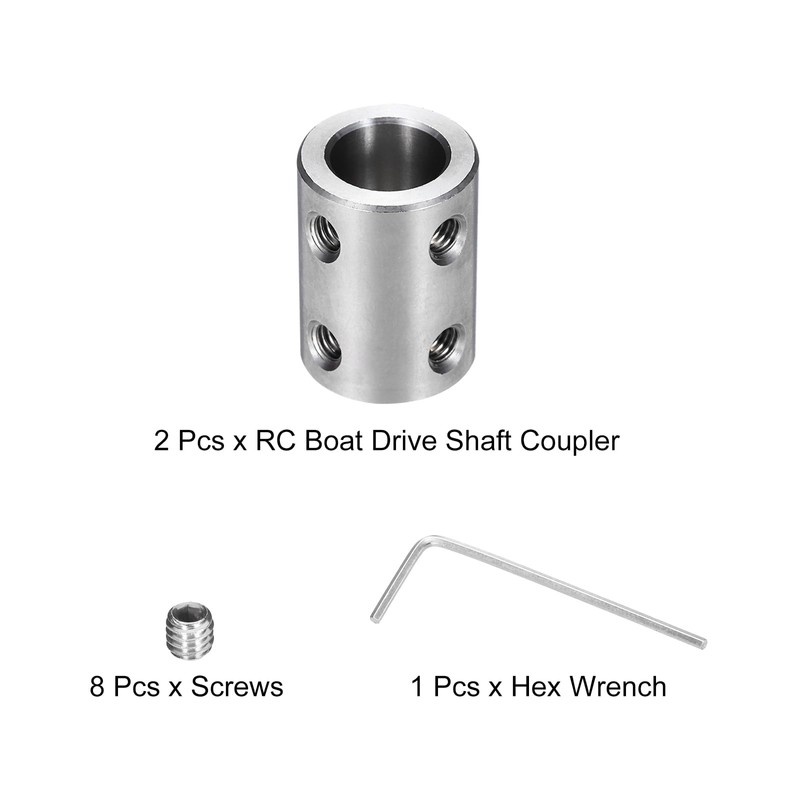 In the package of: 2 Pcs x RC Boat Drive Shaft Coupler with 8 Screws & Hex Wrench