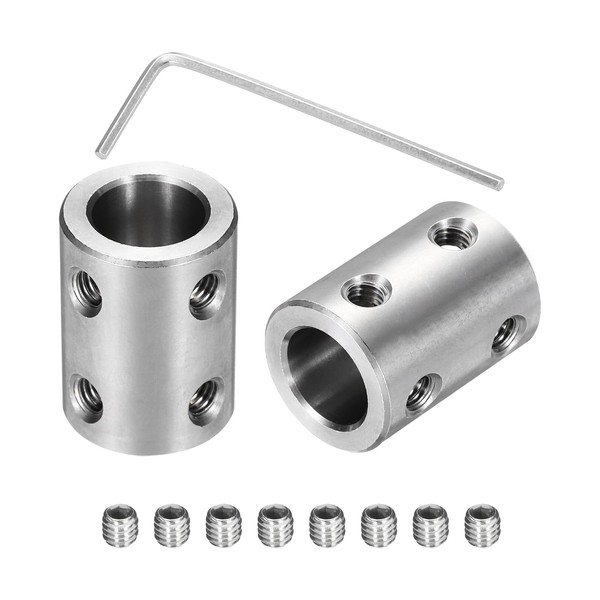 - Inner Diameter: 10mm to 10mm; Total Size: 22x16mm/0.87"x0.62"(LxD); Material: Stainless Steel; Color: Silver; In the package : 2 Pcs x Shaft Coupler Connector with 8 Screws & Hex Wrench