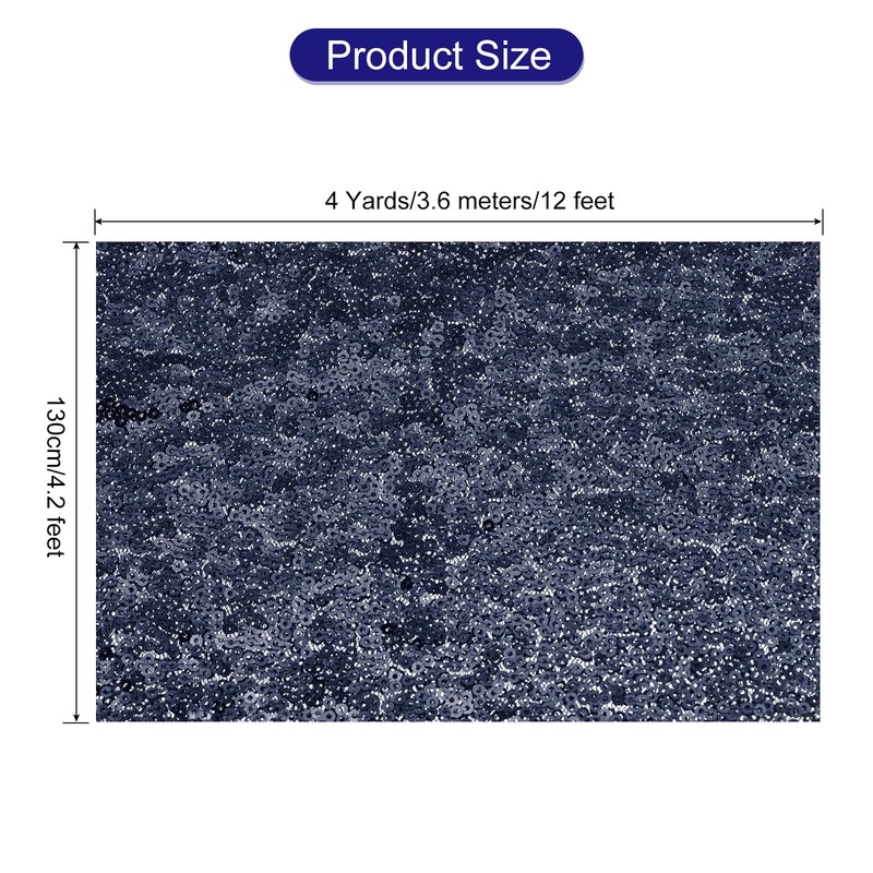 - The mesh sequin fabric, is in size: Length: 4 Yards/3.6 meters/12 feet; Width: 130cm/4.2 feet; Color: Navy Blue.