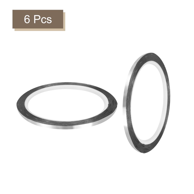 - Per Roll Total Length: 55 Yards/50m; Tape Width: 1/8 Inch/3mm; 0.06 millimeter; Color: Silver Tone; Material: Metalized Polyester and Aluminum Foil; In the package of: 6pcs x Silver Tone Metalized Tape.