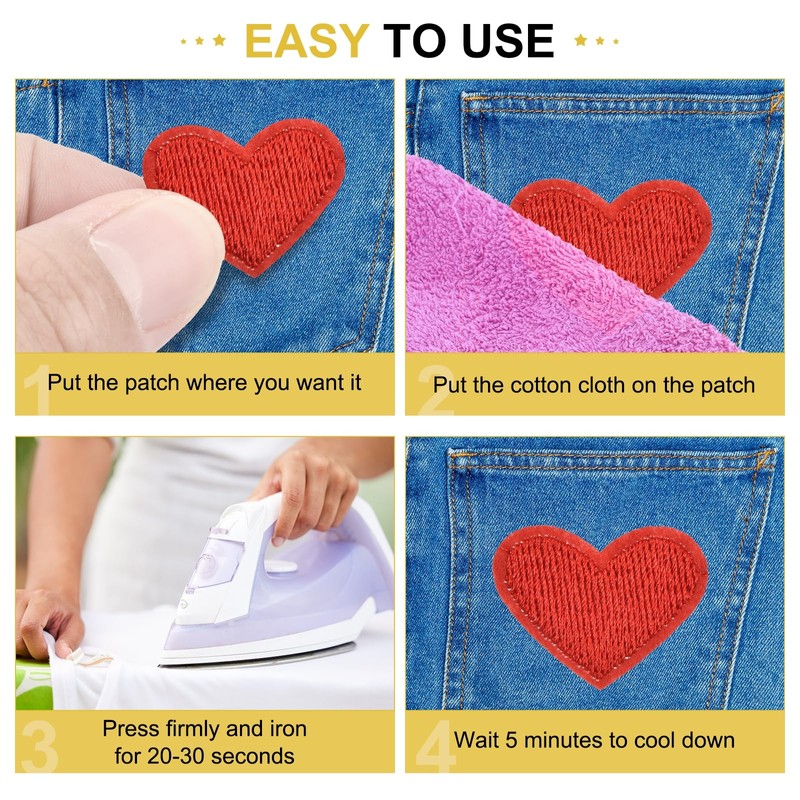 - The heart embroidered patches for sublimation are popular in daily life to play the role of decoration, perfect for pasting on clothes, uniforms, shirts, skirts, suits, jeans, backpacks, hats, caps, shoes, purses, crafts supplies, anything you want to become more personalized and distinctive.