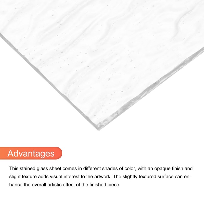 - This stained glass sheet comes in different shades of color, with an opaque finish and slight texture adds visual interest to the artwork. The slightly textured surface can enhance the overall artistic effect of the finished piece.