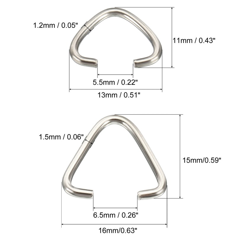 Package Content: 100 x Triangle Open Rings (2 sizes included, each size has 50 pcs)