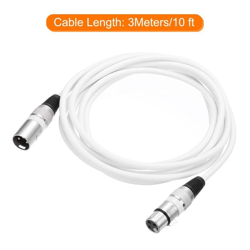 - 5ft XLR Male to Female Microphone Cable Color:White Size:3 Meters /10 ft, Material: The audio cable plug is made of thickened zinc alloy, the wire is made of double-shielded copper conductor wire, the outer cover is imported colored PVC, and the contact pins are silver-plated copper. Package Content: 1 Pack XLR to XLR Cable