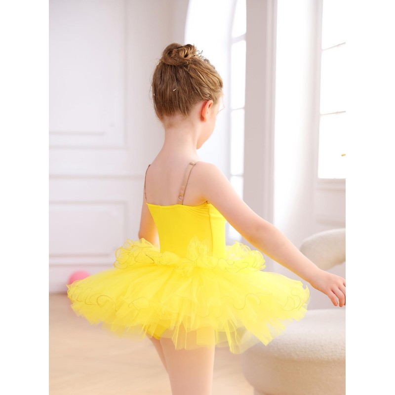 Mecceos Ballet Tutu for Girls Ballerina Swan Lake Costume Toddler Leotard Ballet Dance Costumes (6-7Y,P032-Yellow