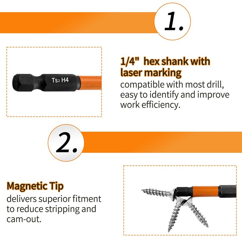 - Premium Screwdriver Bits - Made of engineered steel with forged and heat treated for greater impact resistance and a longer service life.
