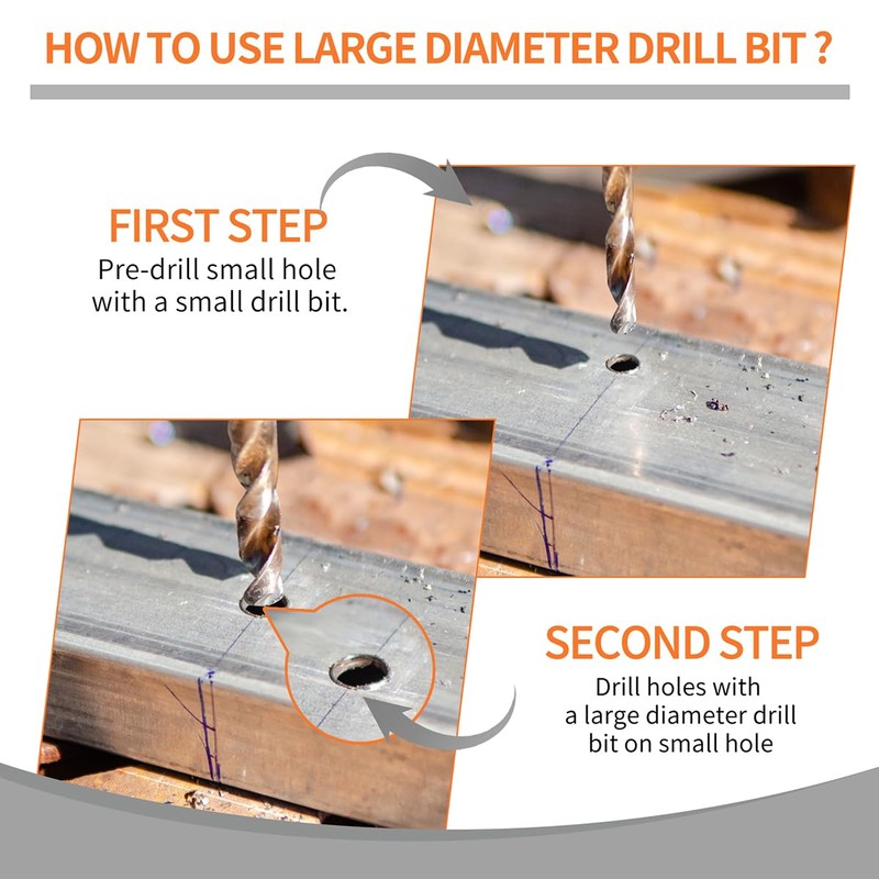 - Instructions for use: Due to the large diameter of the drill, it is need to pre-drill small hole for best results. Drill bit is a consumable item, it will not be sharp enough with prolonged use, you can be to sharped it for continue use
