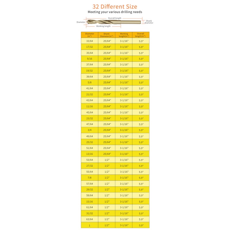 - Professional Drill Bits - Made of 5% Cobalt High Speed Steel with heat treament and hardness up to HRC 67, Ideal for drilling in cast iron, stainless steel, hard metal, copper and so on