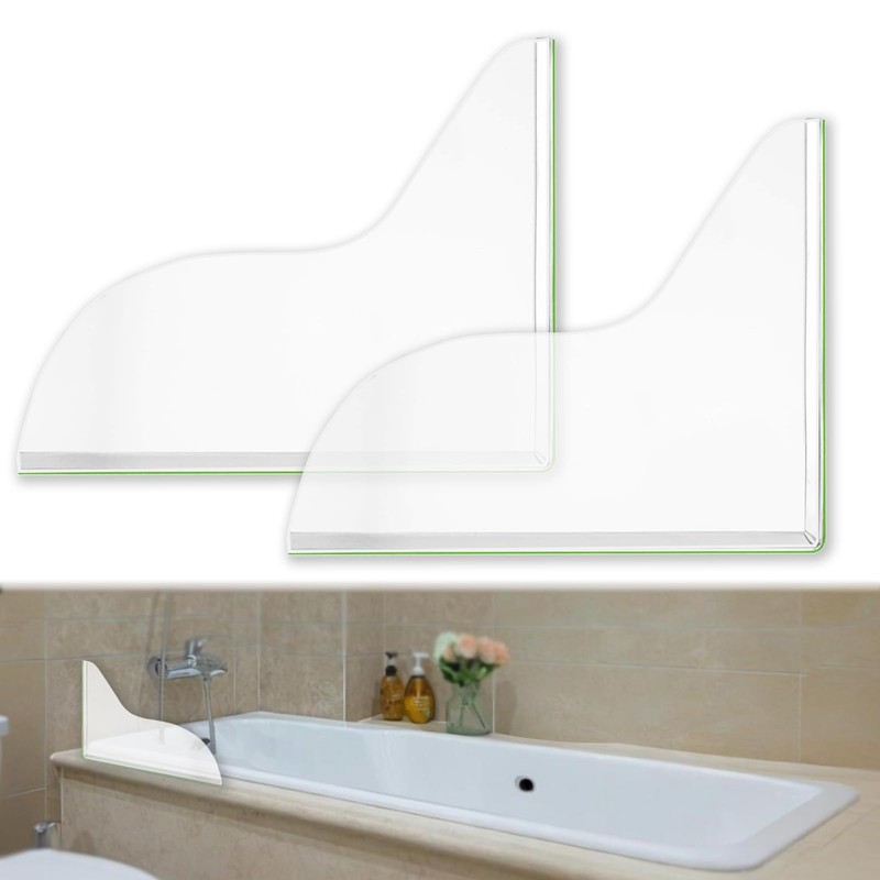 Mecefeno Splash Guard for Bathtub, Clear Bathtub Splash Guard Self-Adhesive Shower Tub Corner Splash Guard to Keep Water in Shower or Bath Can Be Used in Washbasin Tubs Sinks - Pack of 2