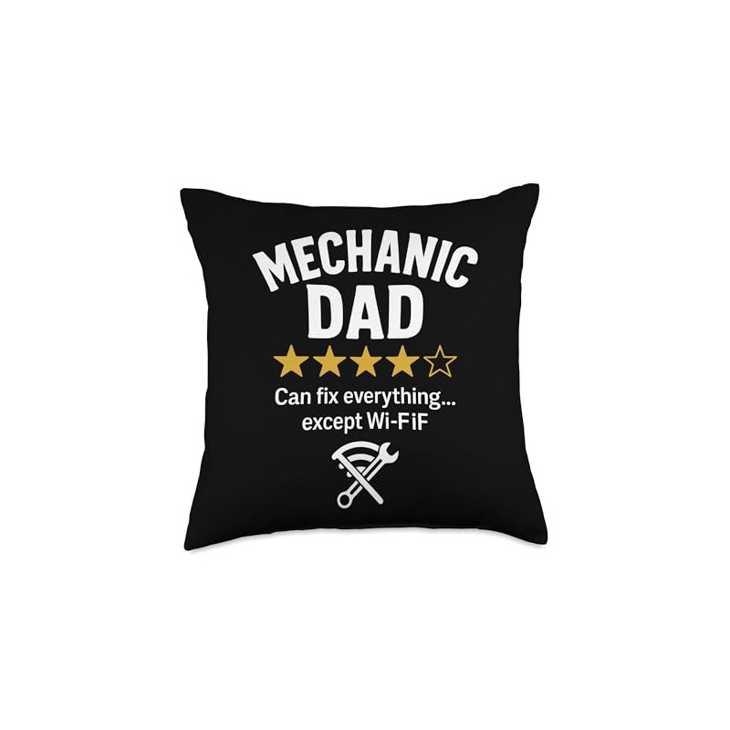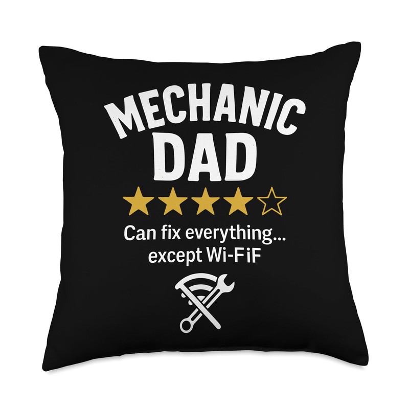 Mechanic Dad Fixes All Except WiFi Funny Quote Throw Pillow