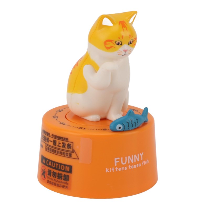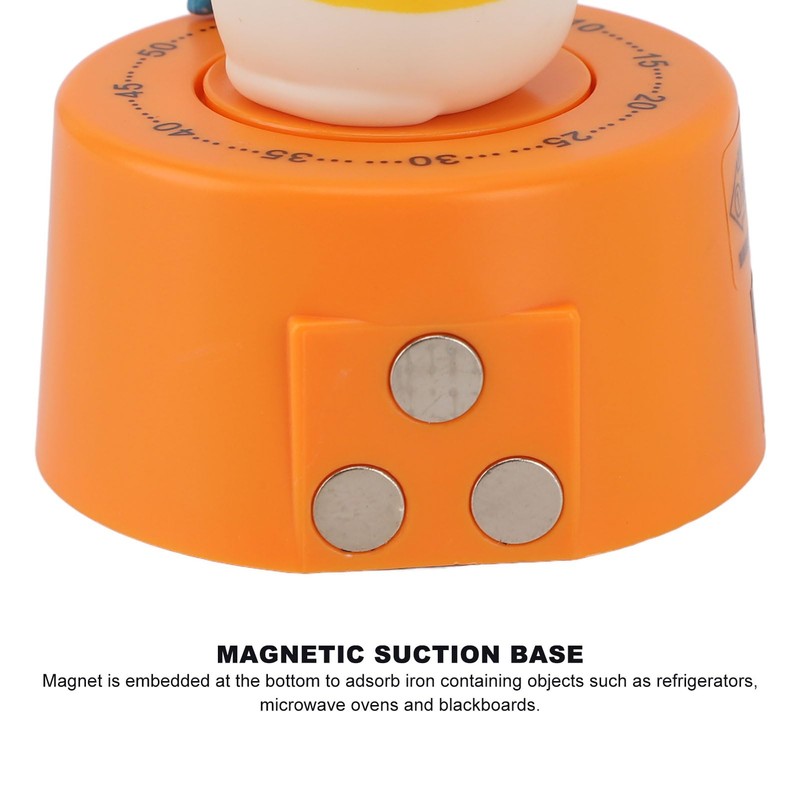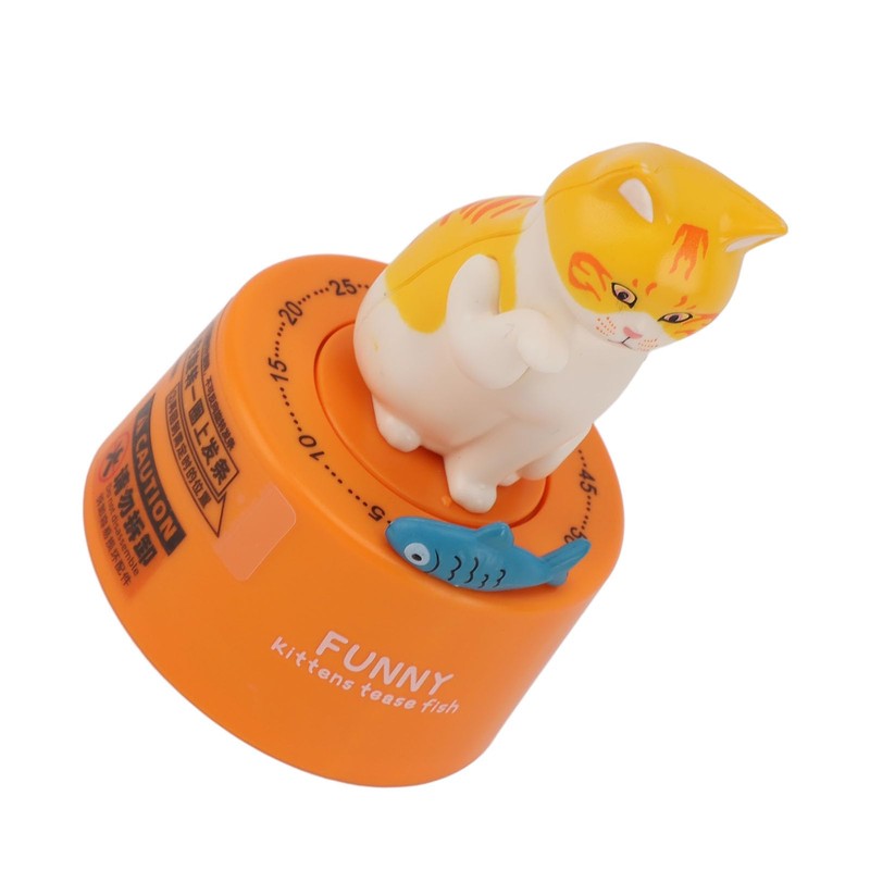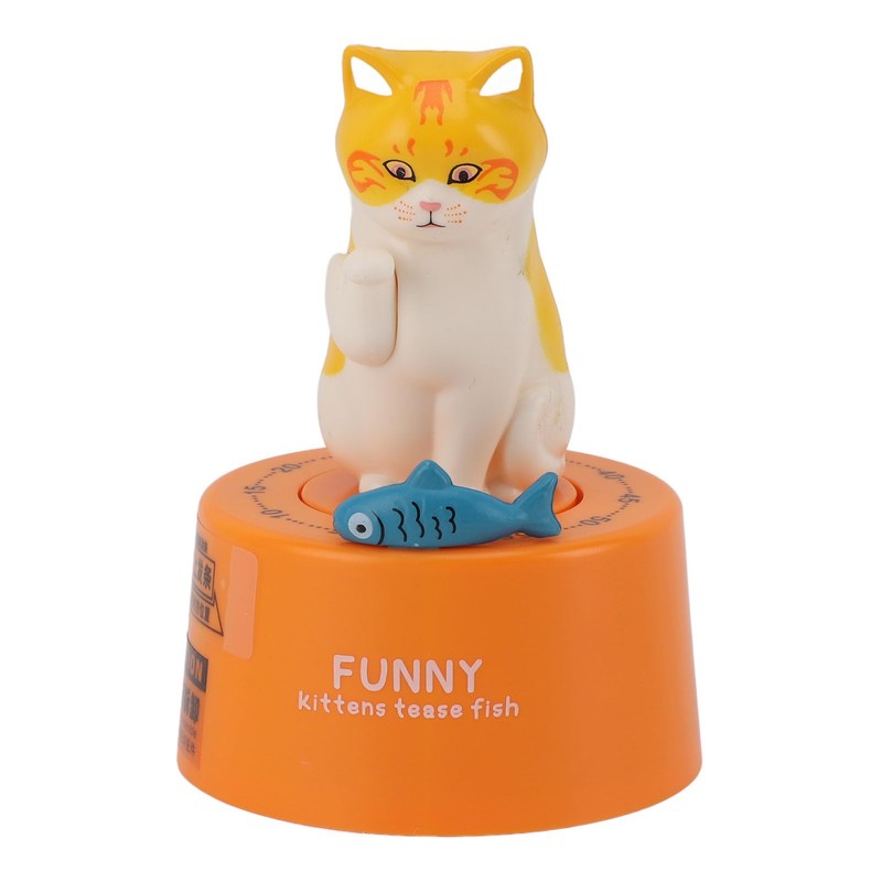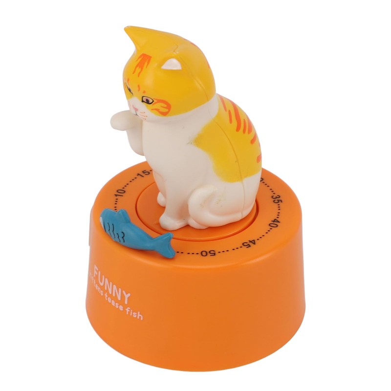 Mechanical Countdown Timer, 60 Minutes Mechanical Kitchen Timer Eco Friendly Loud Alarm Magnetic Base Cute Animal Shape for Kitchen (Kitten with Orange Base)