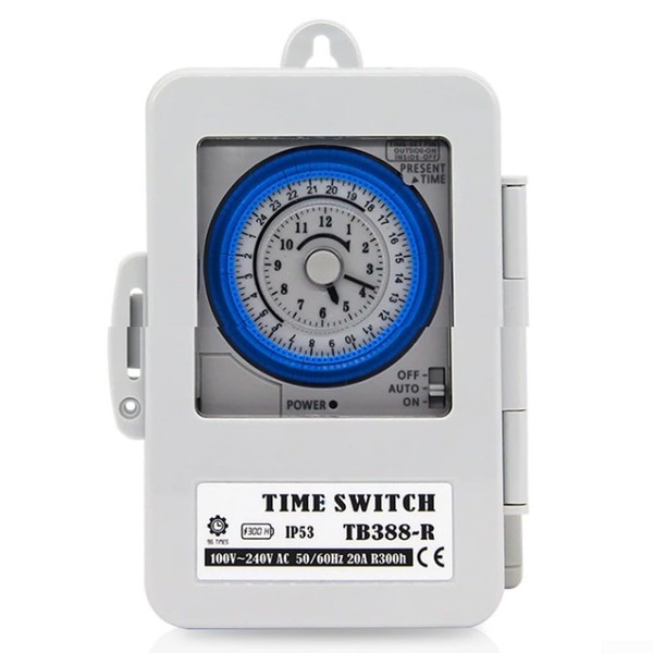 - Waterproof and programmable: The TB388 timer switch is designed to be waterproof and ensures safe use in different environments. It allows daily programmability with a voltage range of 100~250V AC, 20A and provides reliable control over your devices or devices.