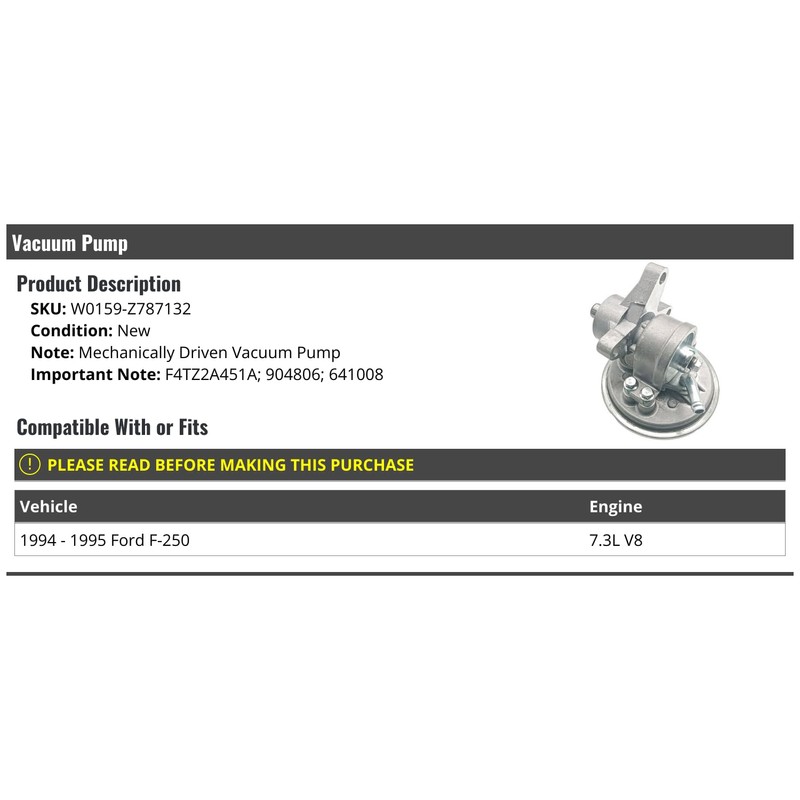 Mechanically Belt Driven Brake Vacuum Pump - Compatible with 1994-1995 Ford F-250 7.3L V8 Diesel