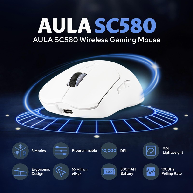 - 【Ergonomic and Lightweight Design】 Meticulously crafted to fit various hand shapes and grip styles, the SC580 ensures comfortable usage during long gaming sessions. Weighing only 81.9g, it features a light yet robust plastic build, balancing strength and weight for a perfectly balanced feel. The ergonomic design minimizes fatigue and maximizes comfort, allowing you to focus on your game.