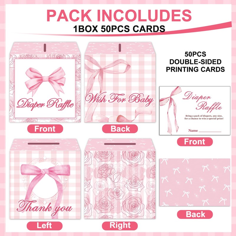 - Easy installation and use - Simply follow the instructions for assembly. No tape is required. In seconds, you are ready to start a fun baby shower! Simply place the raffle tickets in the designated slot of the box, providing a hassle-free experience for both guests and hosts.